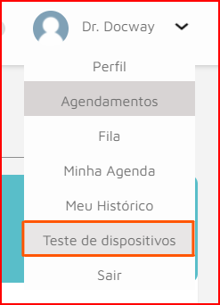Em seguida, clica na seta e selecione a opção "Teste de Dispositivos":
