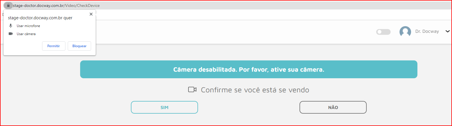 Se essa for a primeira vez em que você vai usar a plataforma uma mensagem de permissão de Câmera e Microfone irá aparecer no canto superior esquerdo. Autorize o acesso: