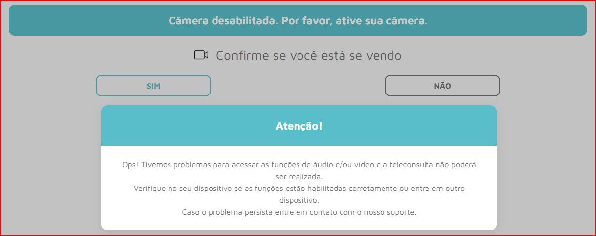 3.b - Caso não conseguiu se ver, feche o navegador e reiniciei seu dispositivo. Ao retornar, faça o mesmo teste. Se ainda sim, não conseguiu se ver entre em contato com o suporte no link abaixo: